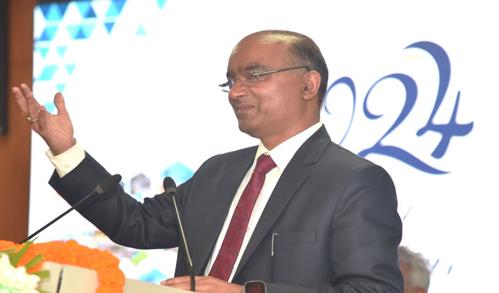 श्री नन्द लाल शर्मा, अध्यक्ष एवं प्रबंध निदेशक, एसजेवीएन ने ‘वर्ष 2024 के लिए प्राथमिकताएं सुनिश्चित करने संबंधी कार्यक्रम’ के दौरान कर्मचारियों को संबोधित किया
